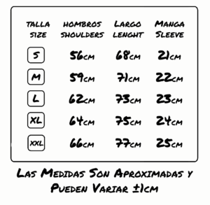 | Talla | S, M, L, XL, 2XL |
